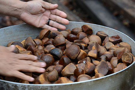 Laísa preparando o Óleo de Andiroba