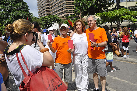 Em Copacabana, Rio de Janeiro, o Movimento participa de mais um manifesto em repúdio a permanência de Marcos Feliciano na Comissão de Direitos Humanos da Câmara. Do MHuD: Osmar Prado, Priscila Camargo, Gilberto Miranda, Ricardo Rezende e Salete Hallack.