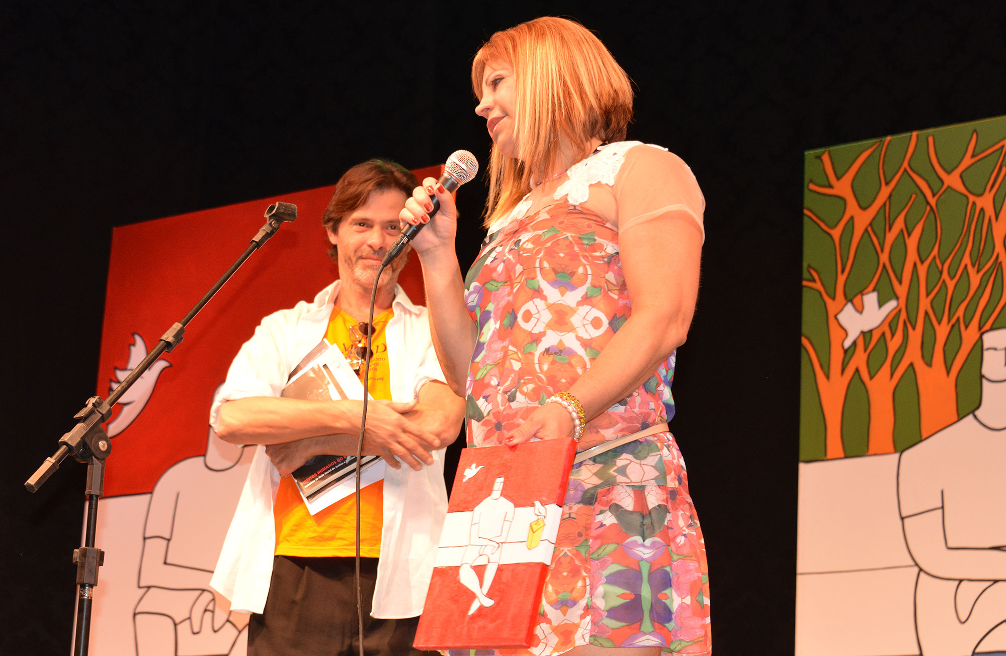 Bete Mendes entre o Prêmio para ALMIR FERREIRA BARROS acompanhado de Luzinete Nascimento.