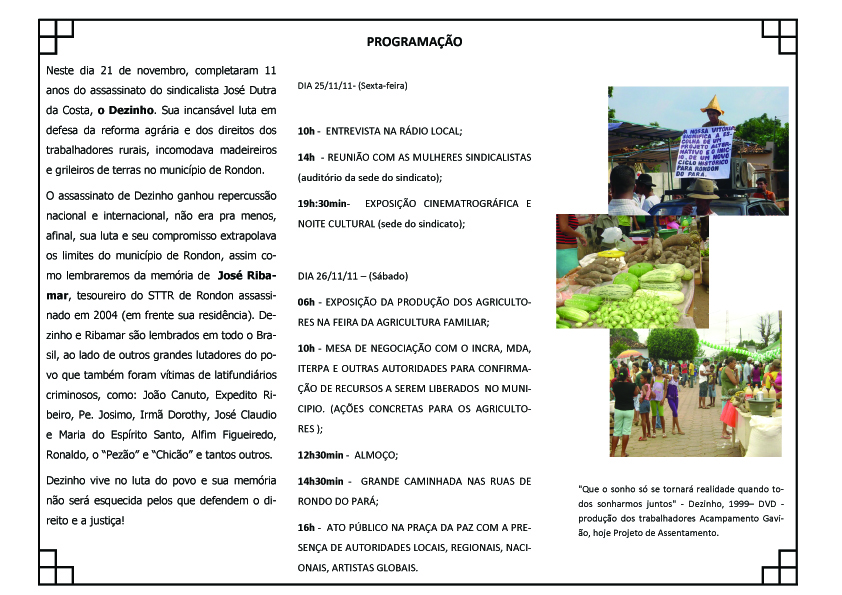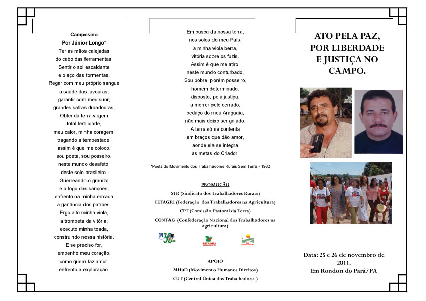 27/11/2011 Ato no Pará denuncia impunidade e cobra reforma agrária