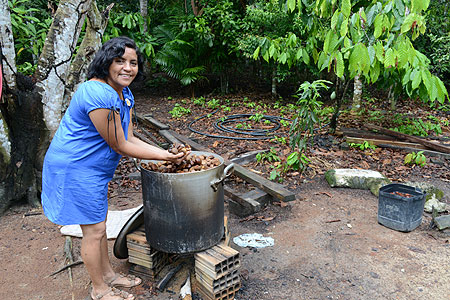 Laísa preparando o Óleo de Andiroba