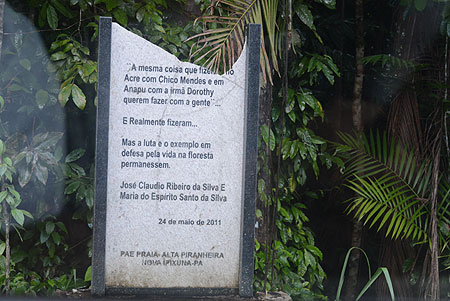 JBA: José Cláudio e a Maria nunca resolviam conflitos usando as próprias forças. Em todos os casos de ilegalidades existentes no assentamento, a primeira medida adotada por eles era denunciar. Denunciar ao IBAMA, ao INCRA, ao Ministério Público Federal, à Polícia Federal e à Pastoral da Terra. Existe um conjunto imenso de denúncias e ofícios encaminhados por eles a esses órgãos. Eles identificavam a ilegalidade, elaboravam a denúncia e cobravam o poder publico. Eles não tomavam a decisão, individualmente, de resolver o problema com as próprias mãos.