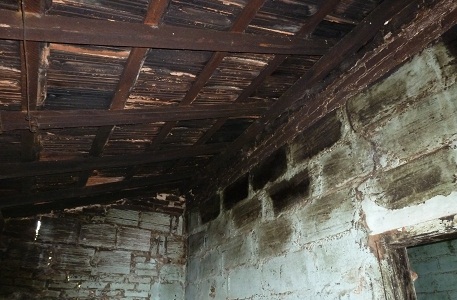 | Teto do alojamento infestado de animais em que trabalhadores dormiam. Fotos: divulgação/MTE) |
